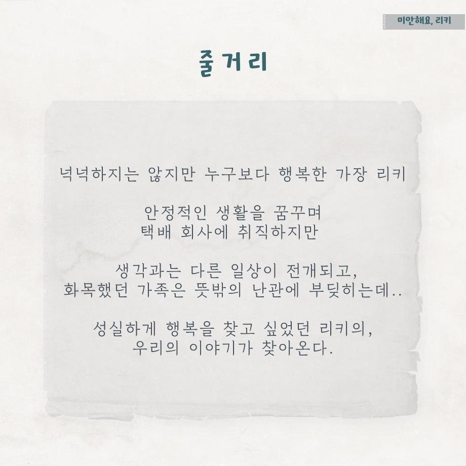 본문 시작 홈으로 MCC News 학과소개 교수소개 학과과정 MCC News MCC SNS 홈페이지가이드 학과 및 재학생 학과 및 재학생 교수 및 졸업생 미디어 정보통 학과 및 재학생 페이스북 트위터 프린트 디콘창이 추천하는 영화 추천 6선 5탄 디지털콘텐츠창작학과 4319 2023-07-21 세명대학교 디지털콘텐츠창작학과가 추천하는 영화 추천 6선 시리즈 다섯 번째입니다! 5탄의 추천 영화는 '미안해요 리키'입니다. 영화 추천 시리즈에는 추천 영화의 줄거리, 스틸컷, 감상 가능한 사이트, 교수님의 한 줄 평까지 볼 수 있습니다. 짧지만 알찬 정보는 담았으니, 다양한 장르의 추천 영화를 감상해 보시고 여러분들의 한 줄 평을 남겨주세요! 영화 추천 6선 시리즈의 마지막인 6탄도 학우분들의 많은 관심 부탁드립니다!❤ 목록 이전🍭 오늘의 디콘 18탄 🍭 다음 학생회가 알려주는 연계전공📚 담당부서 : 미디어콘텐츠창작학과 담당자 : - 연락처 : 043-649-1741 최종수정일 : 2024-10-26 만족도조사 만족도 조사 이 페이지에서 제공하는 정보에 대하여 만족하시나요? 매우만족 만족 보통 불만족 매우불만족