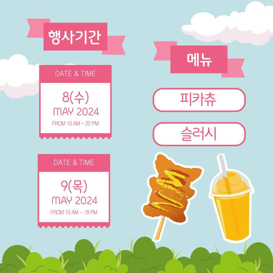 본문 시작 홈으로 MCC News 학과소개 교수소개 학과과정 MCC News MCC SNS 홈페이지가이드 학과 및 재학생 학과 및 재학생 교수 및 졸업생 미디어 정보통 학과 및 재학생 페이스북 트위터 프린트 청룡체전에 우리가 간다! 디지털콘텐츠창작학과 2638 2024-05-08 디지털콘텐츠창작학과 학생회에서 이번 청룡체전이 열리는 5월 8일부터 9일, 오전 10시부터 오후 6시까지 학생회관 앞에서 먹거리 부스를 오픈합니다! 맛있는 피카츄 돈까스와 슬러시가 준비되어 있으니 많이 오셔서 드시고 가세요! 목록 이전디콘창이 MT를 다녀왔어요! 다음 🚩청룡체전 먹거리부스🚩 담당부서 : 미디어콘텐츠창작학과 담당자 : - 연락처 : 043-649-1741 최종수정일 : 2024-10-26 만족도조사 만족도 조사 이 페이지에서 제공하는 정보에 대하여 만족하시나요? 매우만족 만족 보통 불만족 매우불만족