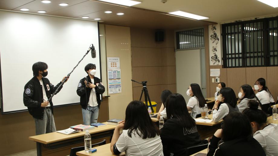오후 시간에는 디콘창 학생회에서 졸업작품 시청과 학과 장비 소개 및 체험을 하며, 조명기와 음향 장비, 카메라 등을 직접 만져볼 수 있는 시간을 가졌습니다. 또한 대학 생활에 관련된 Q&A도 진행하며, 학생들이 대학 생활에 더 많은 관심을 가질 수 있게 되는 계기를 마련하였습니다.