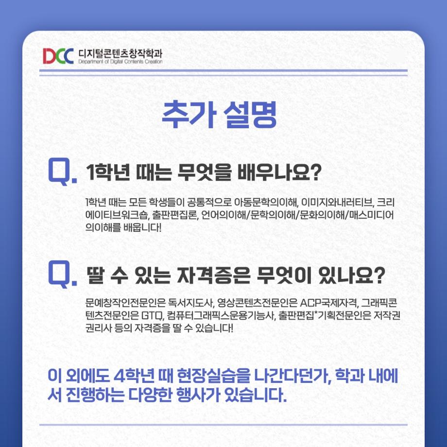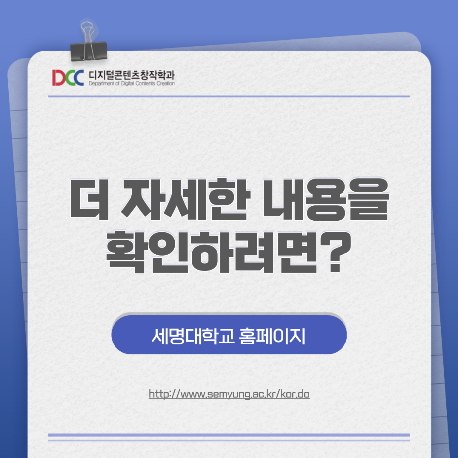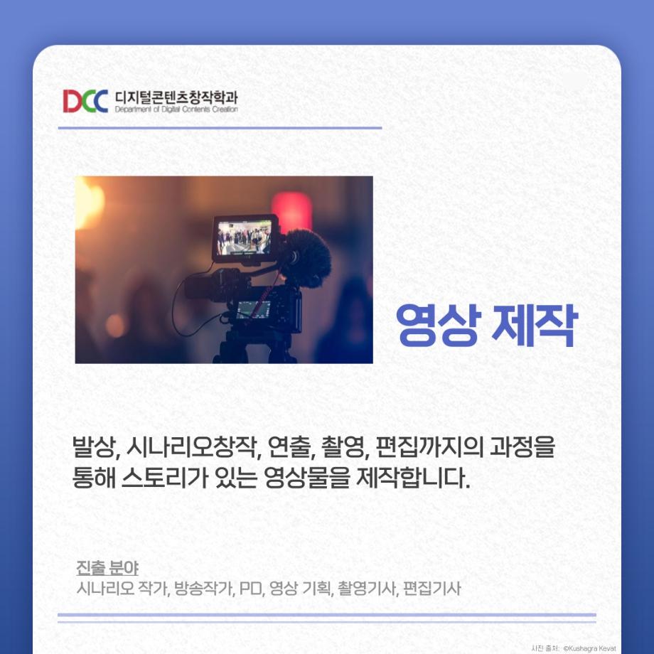 본문 시작 홈으로 MCC News 학과소개 교수소개 학과과정 MCC News MCC SNS 홈페이지가이드 학과 및 재학생 학과 및 재학생 교수 및 졸업생 미디어 정보통 학과 및 재학생 페이스북 트위터 프린트 📚디콘창 세부전공 소개📚 디지털콘텐츠창작학과 5096 2023-08-22 디지털콘텐츠창작학과 세부전공이 궁금한 학우분들을 위해 준비했습니다! 더 자세한 내용이 궁금하시다면 디지털콘텐츠창작학과 홈페이지에서 확인해볼 수 있습니다! 홈페이지 http://www.semyung.ac.kr/media-c.do 목록 이전교내 촬영 장소 추천! 다음 📷디콘창 “촬영”장비 소개📷 담당부서 : 미디어콘텐츠창작학과 담당자 : - 연락처 : 043-649-1741 최종수정일 : 2024-10-26 만족도조사 만족도 조사 이 페이지에서 제공하는 정보에 대하여 만족하시나요? 매우만족 만족 보통 불만족 매우불만족
