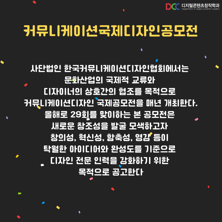 본문 시작 홈으로 MCC News 학과소개 교수소개 학과과정 MCC News MCC SNS 홈페이지가이드 학과 및 재학생 학과 및 재학생 교수 및 졸업생 미디어 정보통 학과 및 재학생 페이스북 트위터 프린트 디지털콘텐츠창작학과 재학생 커뮤니케이션 국제 디자인 공모전 수상 디지털콘텐츠창작학과 8266 2023-09-13 디지털콘텐츠창작학과 학우분들의 공모전 수상을 축하드립니다! 앞으로도 여러분들의 멋진 도전을 응원합니다! 목록 이전디지털콘텐츠창작학과, 장학금 마련을 위한 양심책방 운영 다음 디지털콘텐츠창작학과 재학생 국제 디자인트렌드 대전 수상 담당부서 : 미디어콘텐츠창작학과 담당자 : - 연락처 : 043-649-1741 최종수정일 : 2024-10-26 만족도조사 만족도 조사 이 페이지에서 제공하는 정보에 대하여 만족하시나요? 매우만족 만족 보통 불만족 매우불만족