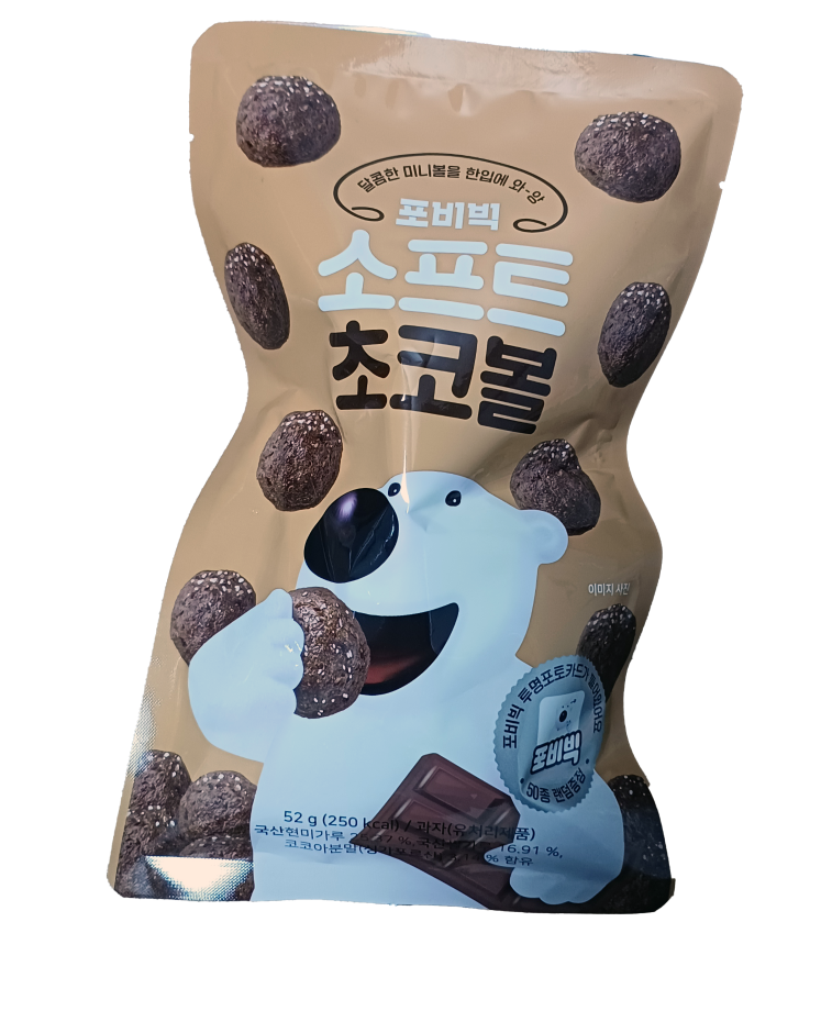 - 달달한 초코맛 보다는 고소하고 가벼운 맛으로 뻥튀기 처럼 생긴 과자이다.