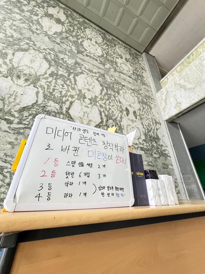 본문 시작 홈으로 MCC News 학과소개 교수소개 학과과정 MCC News MCC SNS 홈페이지가이드 학과 및 재학생 학과 및 재학생 교수 및 졸업생 미디어 정보통 학과 및 재학생 페이스북 트위터 프린트 2024년 추석맞이 특별 이벤트 미디어콘텐츠창작학과 1984 2024-09-13 지난 11일 미디어콘텐츠창작학과 학생회에서 추석맞이 특별 이벤트를 진행했습니다! 추석을 맞이해 학우 여러분들이 뽑기를 통해 다양한 상품을 받아 가셨는데요! 여러분들의 성원에 힘 입어 이벤트 시작 3시간 만에 상품 소진으로 인해 종료하였습니다. 미콘창 학생 뿐만이 아닌 타과 학생 분들도 뽑기에 참여하여 함께 하는 미콘창의 모습을 보여줄 수 있었습니다! 목록 이전디콘창, 미디어콘텐츠창작학과로 이름을 변경하다?! 다음 오랜만에 찾아온 미콘먹거리! 담당부서 : 미디어콘텐츠창작학과 담당자 : - 연락처 : 043-649-1741 최종수정일 : 2024-10-26 만족도조사 만족도 조사 이 페이지에서 제공하는 정보에 대하여 만족하시나요? 매우만족 만족 보통 불만족 매우불만족