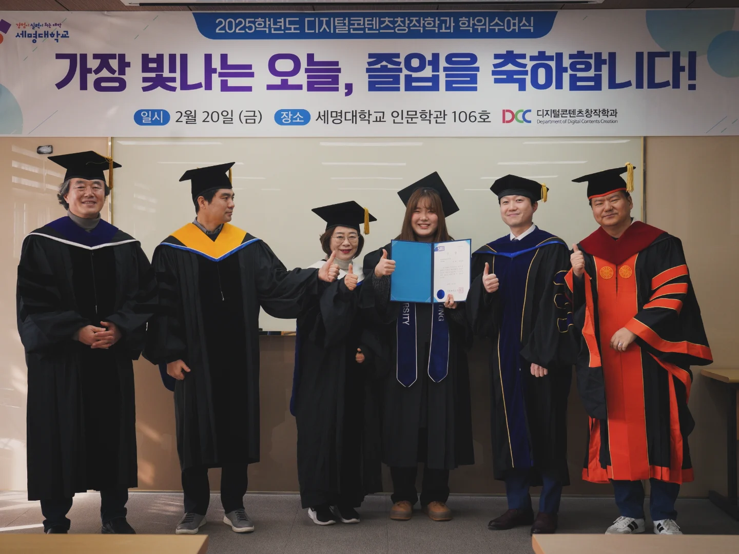 본문 시작 홈으로 MCC News 학과소개 교수소개 학과과정 MCC News MCC SNS 홈페이지가이드 학과 및 재학생 학과 및 재학생 교수 및 졸업생 미디어 정보통 학과 및 재학생 페이스북 트위터 프린트 2025학년도 디지털콘텐츠창작학과 학위수여식 미디어콘텐츠창작학과 619 2026-03-02 🎓디지털콘텐츠창작학과 학위수여식🎓 2025년을 끝으로 졸업하시는 선배님들의 학위수여식이 2026년 2월 20일 금요일 인문학관에서 진행되었습니다! 이제 인생의 첫 페이지를 넘겨 새롭고 무궁무진한 꿈을 써내려갈 멋진 선배님들의 졸업을 진심으로 축하드리며, 앞으로의 모든 날이 소설처럼 아름답기를, 저희 후배들이 열심히 응원하겠습니다!🎉😊 목록 이전미디어콘텐츠창작학과 신입생 꿈 설계학기 2일차.zip 다음 2026학년도 미디어콘텐츠창작학과 개강총회 담당부서 : 미디어콘텐츠창작학과 담당자 : - 연락처 : 043-649-1741 최종수정일 : 2024-10-26 만족도조사 만족도 조사 이 페이지에서 제공하는 정보에 대하여 만족하시나요? 매우만족 만족 보통 불만족 매우불만족