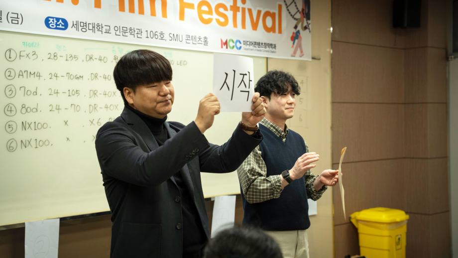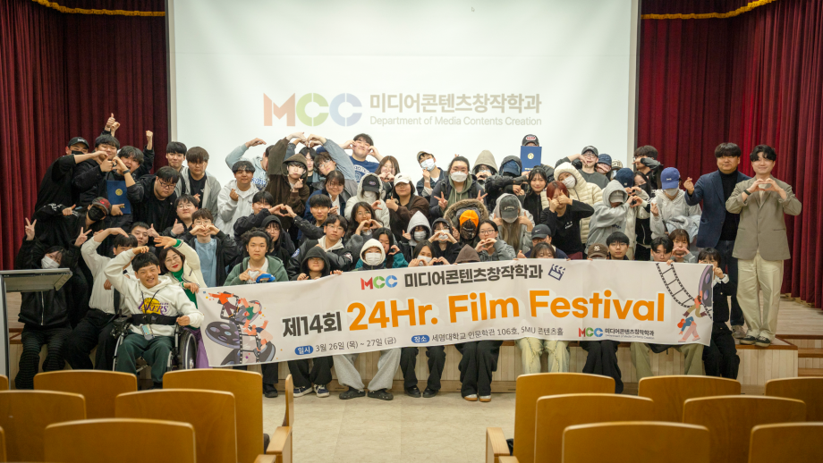 본문 시작 홈으로 MCC News 학과소개 교수소개 학과과정 MCC News MCC SNS 홈페이지가이드 학과 및 재학생 학과 및 재학생 교수 및 졸업생 미디어 정보통 학과 및 재학생 페이스북 트위터 프린트 제14회 24시간 필름 페스티벌 미디어콘텐츠창작학과 42 2026-04-01 미디어콘텐츠창작학과의 행사인 24시간 필름 페스티벌이 3월 26일부터 27일까지 24시간 동안 진행되었습니다. 학과 대표 행사인 24시간 필름 페스티벌은 24시간 동안 주어진 주제에 맞게 각본, 촬영, 편집을 통해 작품을 만드는 행사입니다. 올해는 총 6개의 팀으로 나누어져 ’시작‘을 주제로 영상을 제작했습니다. 학생 여러분 모두 24시간 동안 쉬지 않고 작품 제작 하시느라 고생 많으셨습니다! 목록 이전2026학년도 미디어콘텐츠창작학과 개강총회 담당부서 : 미디어콘텐츠창작학과 담당자 : - 연락처 : 043-649-1741 최종수정일 : 2024-10-26 만족도조사 만족도 조사 이 페이지에서 제공하는 정보에 대하여 만족하시나요? 매우만족 만족 보통 불만족 매우불만족