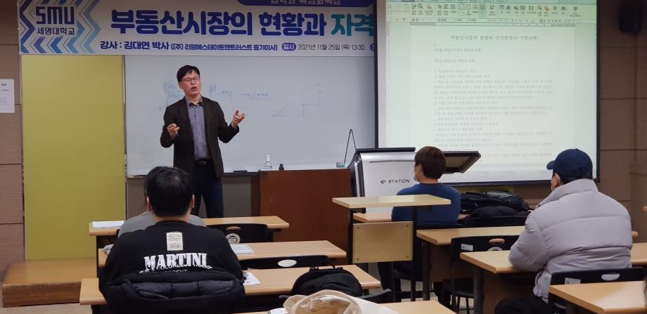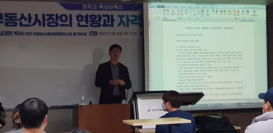 본문 시작 홈으로 커뮤니티 학과안내 교수소개 학과과정 커뮤니티 홈페이지가이드 학과사진첩 공지사항 취업정보 학과사진첩 학과행사 동아리 학생회 교우소식 학과사진첩 페이스북 트위터 프린트 2021. 11. 24 김대연 박사님 특강 법학과 2882 2021-11-25 2021년 11월 24일 (주)리얼이스테이트앤트러스트에서 등기이사을 맡고 계시는 김대연 박사님을 모시고 ' 부동산시장의 현황과 자격증 합격 전략' 이라는 주제로 특강을 진행하였습니다. ※본 특강은 코로나19 방역 수칙을 준수하여 진행하였습니다.※ 목록 이전2021. 11. 24 엄덕수 법무사님 특강 다음 2021 11. 25. 노철우 공인중개사님 특강 담당부서 : 법학과 담당자 : - 연락처 : 043-649-1764 최종수정일 : 2024-10-26 만족도조사 만족도 조사 이 페이지에서 제공하는 정보에 대하여 만족하시나요? 매우만족 만족 보통 불만족 매우불만족