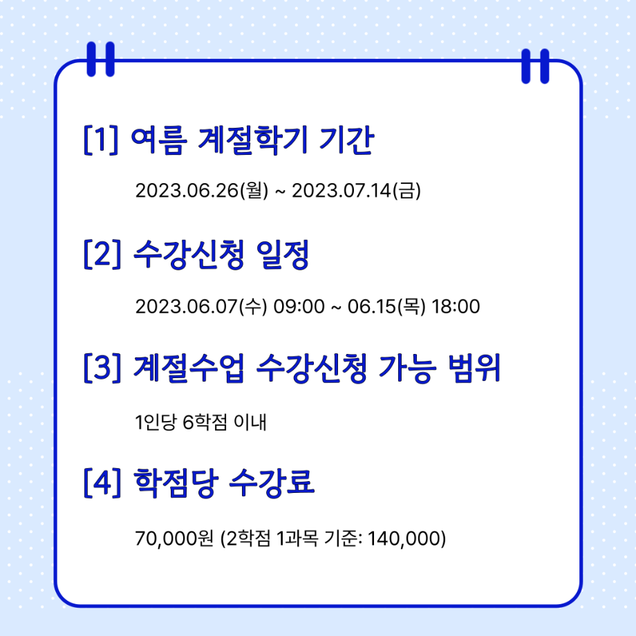 여름 계절학기 수강신청에 대해 공지해 드리겠습니다.