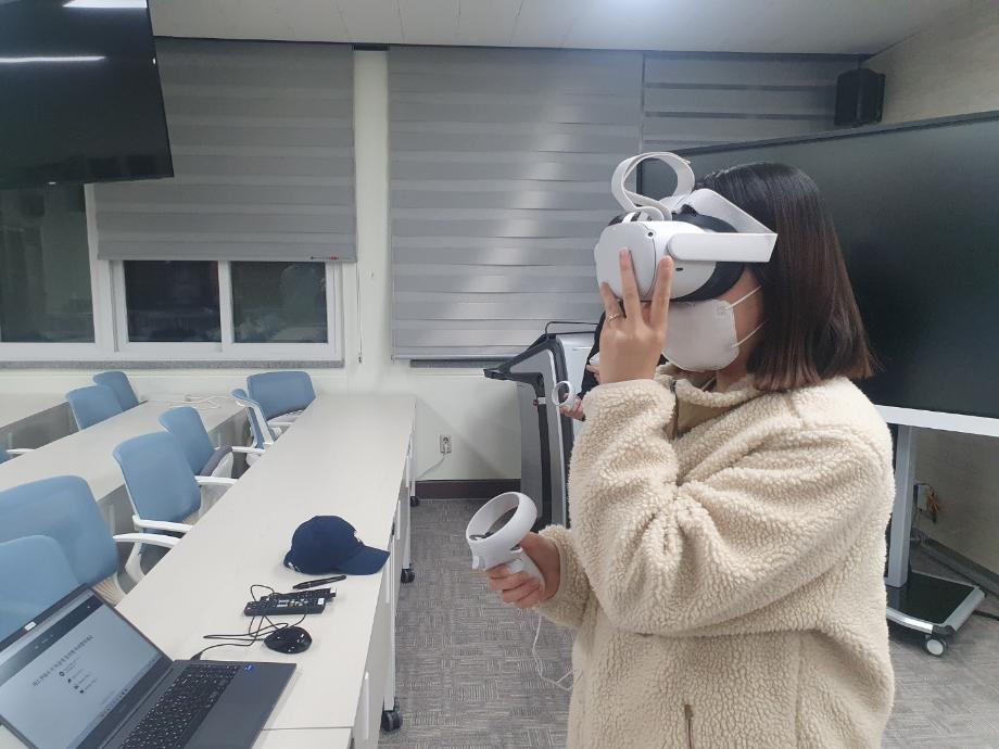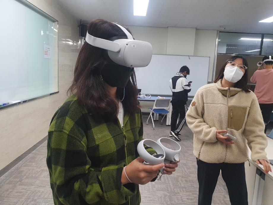 소방방재학과 첨단 강의실과 Creative Cube 강의실 등에서 프로그램 참여 학생들은 4차 산업시대 소방산업의 미래와 전망 등에 관한 강의 및 소방설비 작동 시연, 슈미트 헤머 작동법, VR 시연 등을 수행하였습니다.