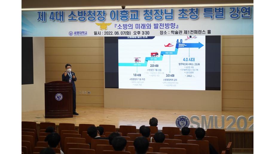 2022년 06월 7일 (화) 제4대 소방청장 이흥교 소방청장 초청 특별 강연이 학술관 제1컨퍼런스 홀에서 있었습니다.