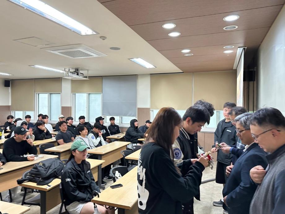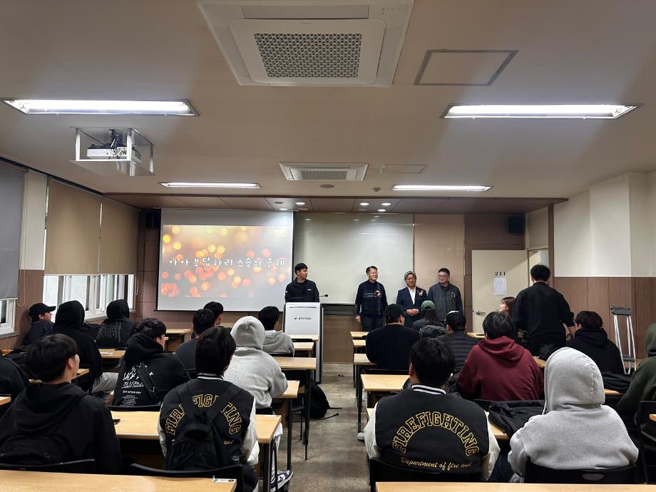본문 시작 홈으로 커뮤니티 학과소개 교수소개 전공과정 커뮤니티 홈페이지가이드 학과행사 학과공지 채용정보 학사일정 학과행사 동아리 소방방재학과의 자랑 궁금합니다 수험생 Q&A 학과행사 페이스북 트위터 프린트 2025년 스승의 날 행사 소방방재학과 1822 2025-05-15 학생회에서 스승의날 행사를 준비해 공학관 211호에서 교수님들께 감사인사를 전하는 시간을 가졌습니다! 윤용균 교수님, 정기신 교수님, 정해영 교수님, 이태규 교수님 항상 감사드립니다 :) 목록 다음 2025년 1학기 소방방재학과 MT Membership Training 다음 2025년 세명대학교 학과대항전 담당부서 : 소방방재학과 담당자 : - 연락처 : 043-649-1787 최종수정일 : 2024-10-26 만족도조사 만족도 조사 이 페이지에서 제공하는 정보에 대하여 만족하시나요? 매우만족 만족 보통 불만족 매우불만족