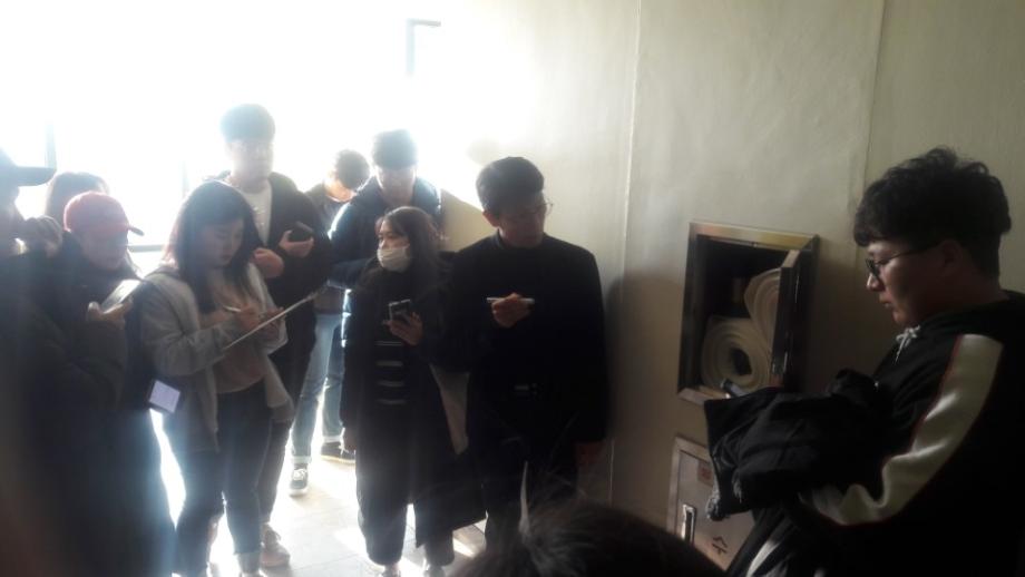 본문 시작 홈으로 커뮤니티 학과소개 교수소개 전공과정 커뮤니티 홈페이지가이드 학과행사 학과공지 채용정보 학사일정 학과행사 동아리 소방방재학과의 자랑 궁금합니다 수험생 Q&A 학과행사 페이스북 트위터 프린트 18-2 소방현장실무체험 소방방재학과 8267 2018-11-15 이번년도부터 개설된 교과목인 소방현장실무체험 과목에 대하여 김규현 강사님이 해당 과목을 수강중인 4학년 학생을 대상으로 교내의 학술관 건물의 전반적인 소방설비시스템을 실물을 통해 설명하였습니다. 목록 이전18-2학기 소방현장실무체험 다음 18-2학기 CPR 교육 담당부서 : 소방방재학과 담당자 : - 연락처 : 043-649-1787 최종수정일 : 2024-10-26 만족도조사 만족도 조사 이 페이지에서 제공하는 정보에 대하여 만족하시나요? 매우만족 만족 보통 불만족 매우불만족