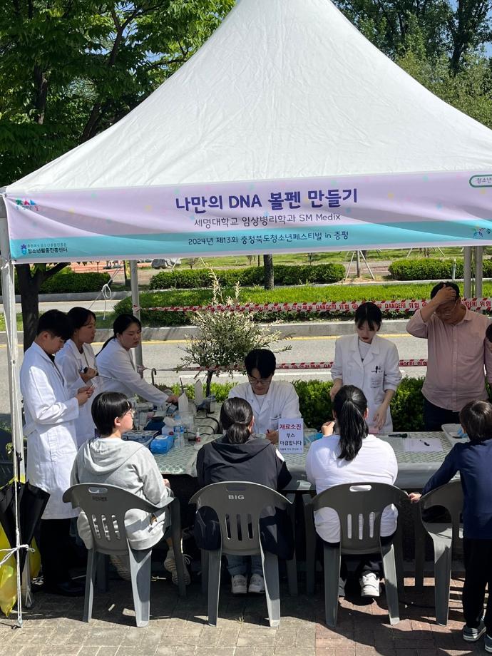 본문 시작 충북도페스티벌 in 증평 임상병리학과 2025 2024-05-18 세명대학교 임상병리학과의 동아리인 SM Medix가 ‘제13회 충북도페스티벌 in 증평’에 부스로 참여했습니다! 여러 중, 고등학생 및 어린이들과 함께 DNA를 활용한 수공예품을 제작하는 시간을 가졌습니다☺️ 많이 참여해주셔서 감사드리며 부스 운영에 힘써주신 분들 모두 수고 많으셨습니다!😄 목록 이전청룡체전 뒷풀이 다음 과대 회식 담당부서 : 임상병리학과 담당자 : - 연락처 : 043-649-1537 최종수정일 : 2024-10-26 만족도조사 만족도 조사 이 페이지에서 제공하는 정보에 대하여 만족하시나요? 매우만족 만족 보통 불만족 매우불만족