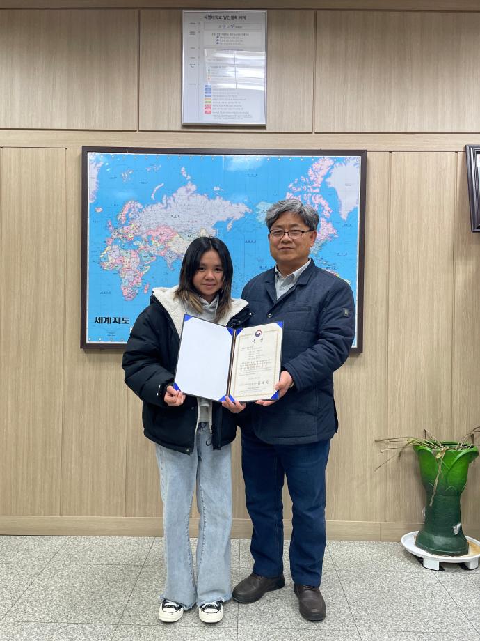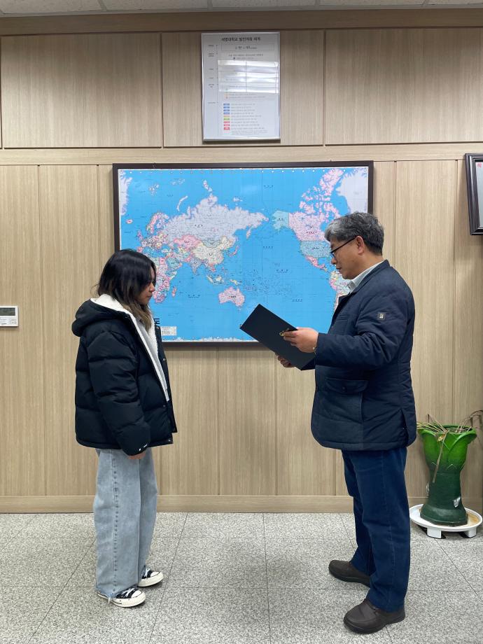 본문 시작 홈으로 학부자료실 학부소개 교육과정 학부공지게시판 학부자료실 홈페이지가이드 학부행사 및 사진게시판 학부행사 및 사진게시판 학생회 소개 학부행사 및 사진게시판 페이스북 트위터 프린트 우리학부 생 시티카(캄보디아) 국립국제교육원 원장상 수상 바이오제약산업학부 3123 2024-02-01 바이오제약산업학부 학부과정에 재학 중인 생 시티카(캄보디아)는 우수한 학업 성과를 인정받아 교육부 산하 국립국제교육원으로부터 원장상을 수상했다. 생시티카 학생은 정부초청장학생으로 2022년 세명대학교 바이오제약산업학부 입학 후 한국어능력시험(TOPIK) 6급 취득 및 우수한 학업 성적을 유지하고 있다. 국립국제교육원에서는 정부초청외국인장학사업(GKS)을 통해 초청한 외국인 장학생 중 유학 생활 성과가 우수한 학생을 매년 선정해 시상하고 있다. 목록 이전축하합니다. 권*현, 박*호 학생이 휴온스에 취업하였습니다. 다음 2024학년도 404호 강의실 리모델링 담당부서 : 바이오제약산업학부 담당자 : - 연락처 : 043-649-1729 최종수정일 : 2024-10-26 만족도조사 만족도 조사 이 페이지에서 제공하는 정보에 대하여 만족하시나요? 매우만족 만족 보통 불만족 매우불만족