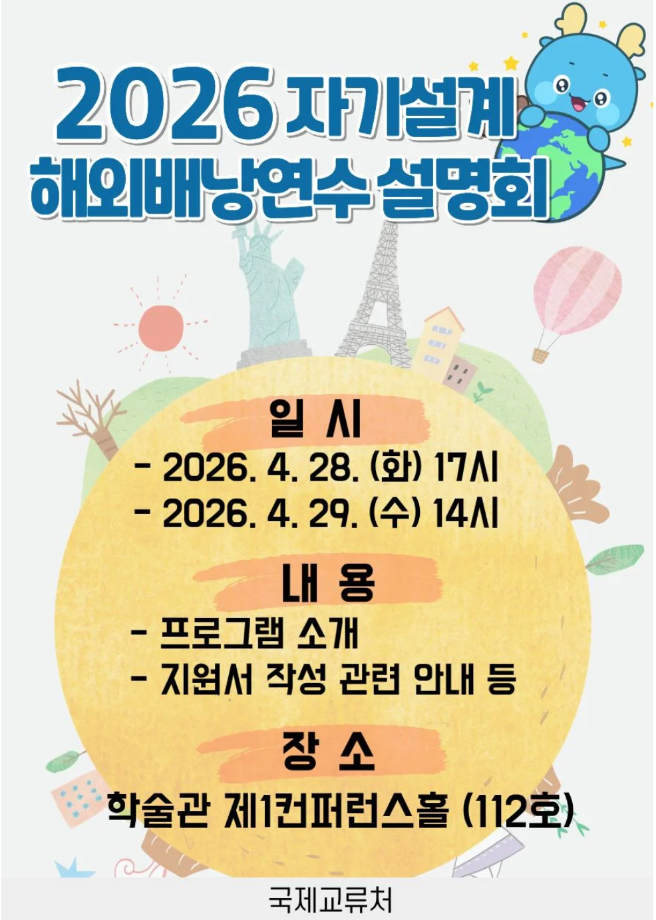 본문 시작 홈으로 학부자료실 학부소개 교육과정 학부공지게시판 학부자료실 홈페이지가이드 학부행사 및 사진게시판 학부행사 및 사진게시판 학생회 소개 학부행사 및 사진게시판 페이스북 트위터 프린트 2026 자기설계 해외배낭연수 설명회 시행 안내 바이오제약산업학부 37 2026-04-27 2026 자기설게 해외배낭연수와 관련하여 설명회를 진행하고자 하오니 재학생 여러분의 많은 관심과 참여를 부탁드립니다. 목록 이전축하합니다. 이*서 학생이 시마즈사이언티픽코리아에 취업하였습니다. 다음 2026 세명진로페스티벌 안내 담당부서 : 바이오제약산업학부 담당자 : - 연락처 : 043-649-1729 최종수정일 : 2024-10-26 만족도조사 만족도 조사 이 페이지에서 제공하는 정보에 대하여 만족하시나요? 매우만족 만족 보통 불만족 매우불만족