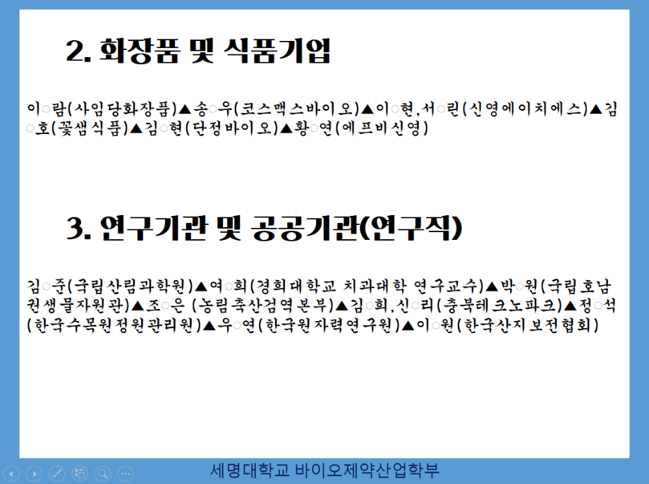 본문 시작 홈으로 학부자료실 학부소개 교육과정 학부공지게시판 학부자료실 홈페이지가이드 학부행사 및 사진게시판 학부행사 및 사진게시판 학생회 소개 학부행사 및 사진게시판 페이스북 트위터 프린트 바이오제약산업학부 취업자 현황 바이오제약산업학부 3261 2023-09-10 바이오제약산업학부 취업자 현황 본인이 공개하기를 동의하지 않은 경우를 제외하고 취업현황을 공지하니 착오없으시기 바랍니다. 목록 이전이종원박사(강신호교수연구실, 2021) 한국산지보전협회 임용 다음 수시모집 기간안내 2023. 09.11-09.15 담당부서 : 바이오제약산업학부 담당자 : - 연락처 : 043-649-1729 최종수정일 : 2024-10-26 만족도조사 만족도 조사 이 페이지에서 제공하는 정보에 대하여 만족하시나요? 매우만족 만족 보통 불만족 매우불만족