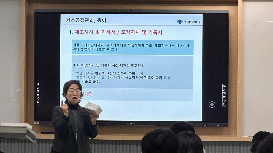 본문 시작 홈으로 학부자료실 학부소개 교육과정 학부공지게시판 학부자료실 홈페이지가이드 학부행사 및 사진게시판 학부행사 및 사진게시판 학생회 소개 학부행사 및 사진게시판 페이스북 트위터 프린트 휴메딕스 이은숙 이사 특강_현직자가 알려주는 GMP&Validation 바이오제약산업학부 3350 2023-12-08 바이오제약산업학부에서는 휴메딕스 생산실장, 제조부서책임자 이은숙 이사님을 모시고 휴메딕스 GMP 관리 현황에 대한 특강을 진행하였다. GMP가 엄격히 관리되고 있는 기업의 현황을 사례로 제약산업에서 필수적인 GMP에 대한 의미있는 교육이 진행되었다. 목록 이전휴메딕스 원상호 부장 특강_현직자가 알려주는 제약품질 관리 다음 2023학년도 전기 학위 수여식 안내 담당부서 : 바이오제약산업학부 담당자 : - 연락처 : 043-649-1729 최종수정일 : 2024-10-26 만족도조사 만족도 조사 이 페이지에서 제공하는 정보에 대하여 만족하시나요? 매우만족 만족 보통 불만족 매우불만족