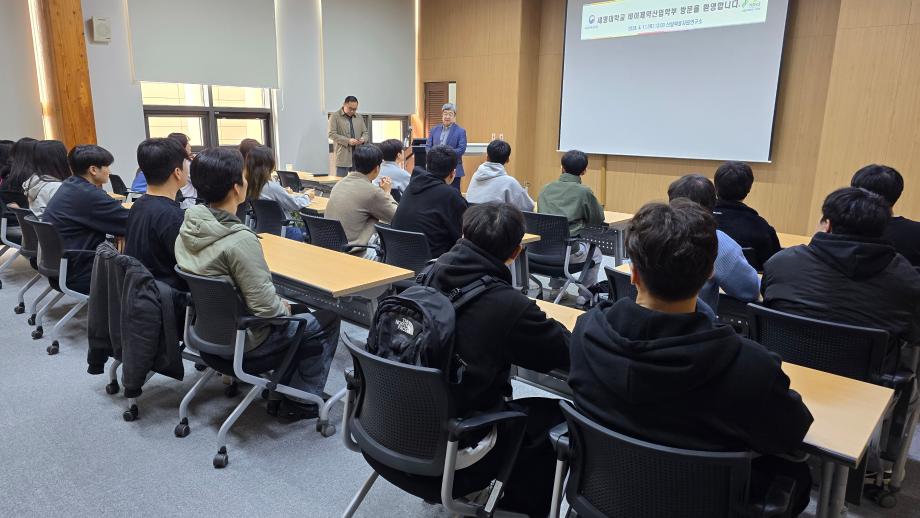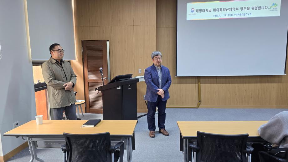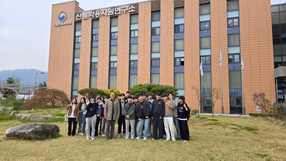 본문 시작 홈으로 학부자료실 학부소개 교육과정 학부공지게시판 학부자료실 홈페이지가이드 학부행사 및 사진게시판 학부행사 및 사진게시판 학생회 소개 학부행사 및 사진게시판 페이스북 트위터 프린트 산림청 국립산림과학원 산림약용자원연구소 탐방 바이오제약산업학부 3114 2024-04-12 산림청 국립산림과학원 산림약용자원연구소 견학 바이오제약산업학부에서는 산림청 국립산림과학원 산림약용자원연구소를 2024년 4월 11일 견학하였다. 고상현 소장님의 환영인사말씀이 있었고, 산림약용자원연구소 소개 및 업무, 시설 등을 견학하고 우리학부 졸업생 김현준 박사/연구사와 격의 없는 질의응답시간을 가졌다. 이번 견학으로 학생들의 진로설정과 학습의지 고취에 도움이 되었기를 기대한다. 목록 이전보건바이오대학 체육대회 개최_ 바이오제약산업학부 농구 우승 다음 세명대학교-대한뉴팜 산학협력협약 체결 담당부서 : 바이오제약산업학부 담당자 : - 연락처 : 043-649-1729 최종수정일 : 2024-10-26 만족도조사 만족도 조사 이 페이지에서 제공하는 정보에 대하여 만족하시나요? 매우만족 만족 보통 불만족 매우불만족