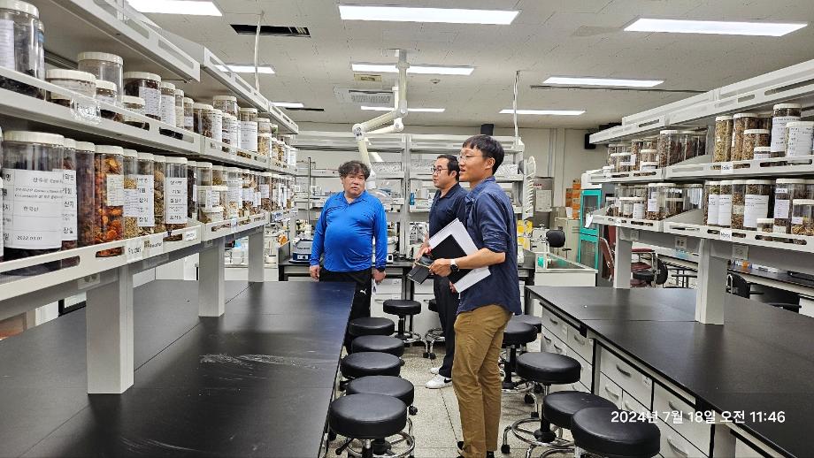 본문 시작 홈으로 학부자료실 학부소개 교육과정 학부공지게시판 학부자료실 홈페이지가이드 학부행사 및 사진게시판 학부행사 및 사진게시판 학생회 소개 학부행사 및 사진게시판 페이스북 트위터 프린트 산림청 국립산림과학원 산림약용자원연구소 연구개발 협의 바이오제약산업학부 2643 2024-07-21 2024년 7월 18일 산림청 국립산림과학원 산림약용자원연구소 김현준 연구사와 손용환박사가 바이오제약산업학부를 방문하여 진행되고 있는 과제의 점검과 향후 과제에 대한 논의를 하였다. 김현준 박사는 세명대학교 전체수석으로 졸업한 바이오제약산업학부 1회 동문으로 현재는 산림청 국립산림과학원 산림약용자원연구소에서 연구사로 근무 중이다. 목록 이전유유제약 표준현장실습 박*은 면담 다음 우리학부 동문 박지원 박사 2년 연속 한국미생물 · 생명공학회 우수 포스터발표상 수상 담당부서 : 바이오제약산업학부 담당자 : - 연락처 : 043-649-1729 최종수정일 : 2024-10-26 만족도조사 만족도 조사 이 페이지에서 제공하는 정보에 대하여 만족하시나요? 매우만족 만족 보통 불만족 매우불만족