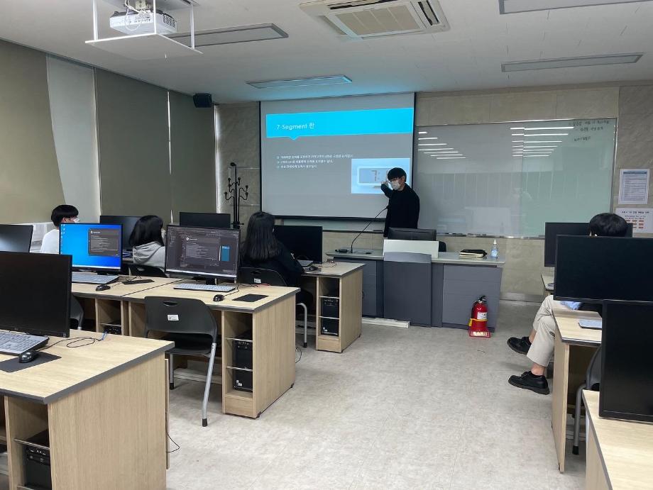 본문 시작 홈으로 커뮤니티 학과소개 교육과정 학과활동 커뮤니티 진로취업 입학상담 홈페이지가이드 포토갤러리 학과공지 포토갤러리 자유게시판 동영상 게시판 포토갤러리 페이스북 트위터 프린트 M.X동아리 세미나 전자공학과 2212 2022-05-10 전자공학과의 동아리 'M.X'동아리는 일주일에 한번씩 담당교수님과 동아리부원들끼리 세미나를 진행합니다. 선배가 배워왔던 전공 과목을 복습을 하여 자료를 준비해 후배들과 함께 이론 및 실습 경험을 쌓고, 교수님과 선 후배간의 피드백을 주고받는 시간입니다. 세미나는 매주 진행중이며 이 세미나를 통해 발표 능력을 향상 시키며, 전공 과목을 쉽게 배울 수 있는 'M.X'동아리만의 특별한 시간입니다. 목록 이전교수님과 선배기업 탐방 다음 '센서 IoT를 활용 기술의 전공 실무 적용' 특강 담당부서 : 전자공학과 담당자 : - 연락처 : 043-649-1683 최종수정일 : 2024-10-26 만족도조사 만족도 조사 이 페이지에서 제공하는 정보에 대하여 만족하시나요? 매우만족 만족 보통 불만족 매우불만족