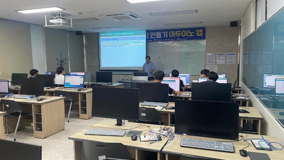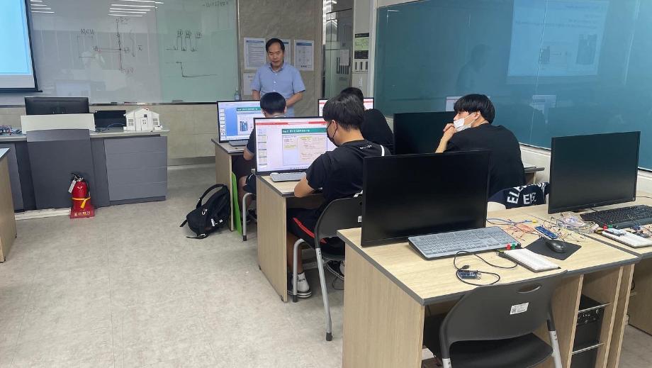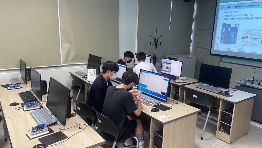 본문 시작 홈으로 커뮤니티 학과소개 교육과정 학과활동 커뮤니티 진로취업 입학상담 홈페이지가이드 포토갤러리 학과공지 포토갤러리 자유게시판 동영상 게시판 포토갤러리 페이스북 트위터 프린트 제천 세명고등학교 특강 2일차(나의 앱 만들기 아두이노 앱) 전자공학과 3239 2022-07-15 7/14일 세명고등학교 학생을 상대로 ‘나의 앱 만들기 아두이노 앱’ 특강을 진행하였습니다. 비교적 짧은 시간이였지만 학생들은 IoT에 필요한 여러 센서들을 제어하며 블루투스와 어플을 이용하여 간단한 IoT 실습을 하였습니다. 학생들이 전자공학에 관심을 가지고 흥미를 가질 수 있는 시간이였습니다. 목록 이전제천 세명고등학교 특강 1일차(나의 앱 만들기 아두이노 앱) 다음 2022년도 전자공학과 전공체험 프로그램 담당부서 : 전자공학과 담당자 : - 연락처 : 043-649-1683 최종수정일 : 2024-10-26 만족도조사 만족도 조사 이 페이지에서 제공하는 정보에 대하여 만족하시나요? 매우만족 만족 보통 불만족 매우불만족