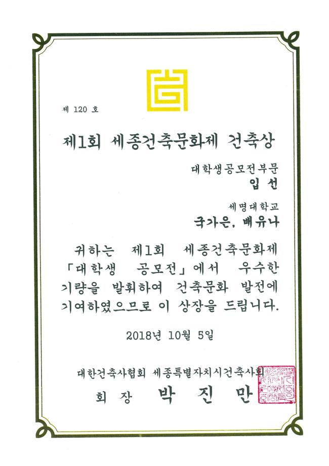 본문 시작 홈으로 커뮤니티 학과소개 교수소개 교육과정 학과 행사 및 활동 커뮤니티 홈페이지가이드 페이스북 트위터 프린트 제1회 세종건축문화제 건축상 수상 건축공학과 10797 2018-10-15 제1회 세종건축문화제 건축상 대학생공모전부문 입선 성명: 국가은, 배유나 목록 이전2017 한국건설관리학회 정기학술발표대회 우수논문상 수상 다음 전국대학생 학술발표대회 논문 부분 수상 만족도조사 만족도 조사 이 페이지에서 제공하는 정보에 대하여 만족하시나요? 매우만족 만족 보통 불만족 매우불만족