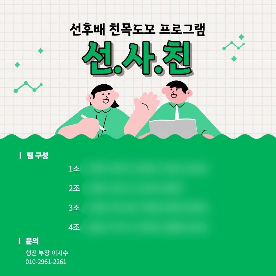 코로나19 이후 드디어 제대로된 대학생활을 맞이한 여러분들을 위한 <선.사.친> 프로그램이 진행됩니다.