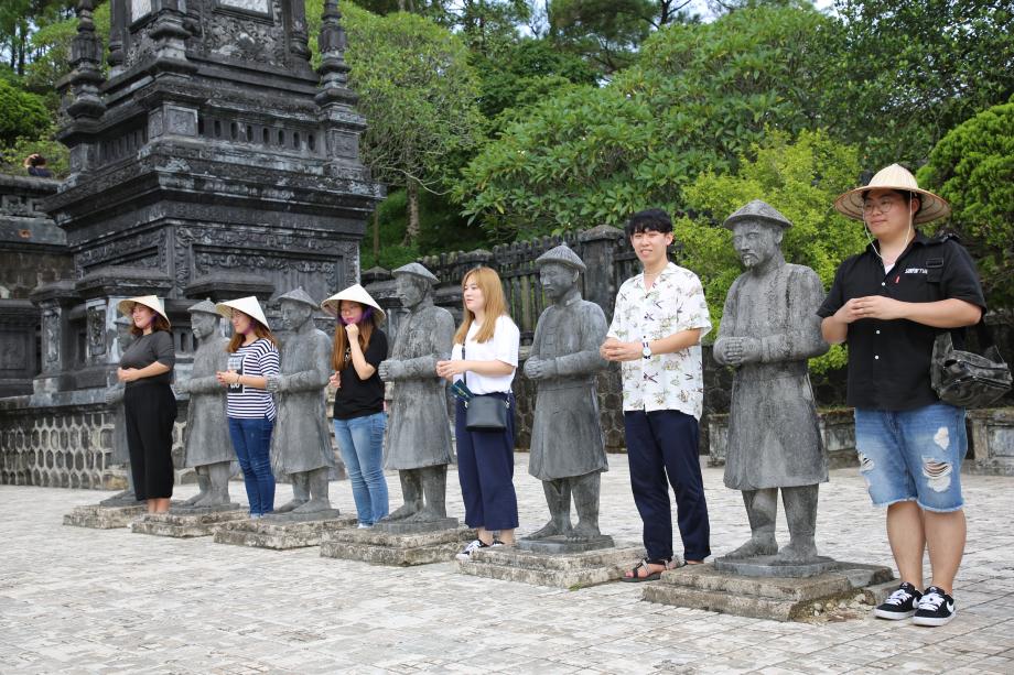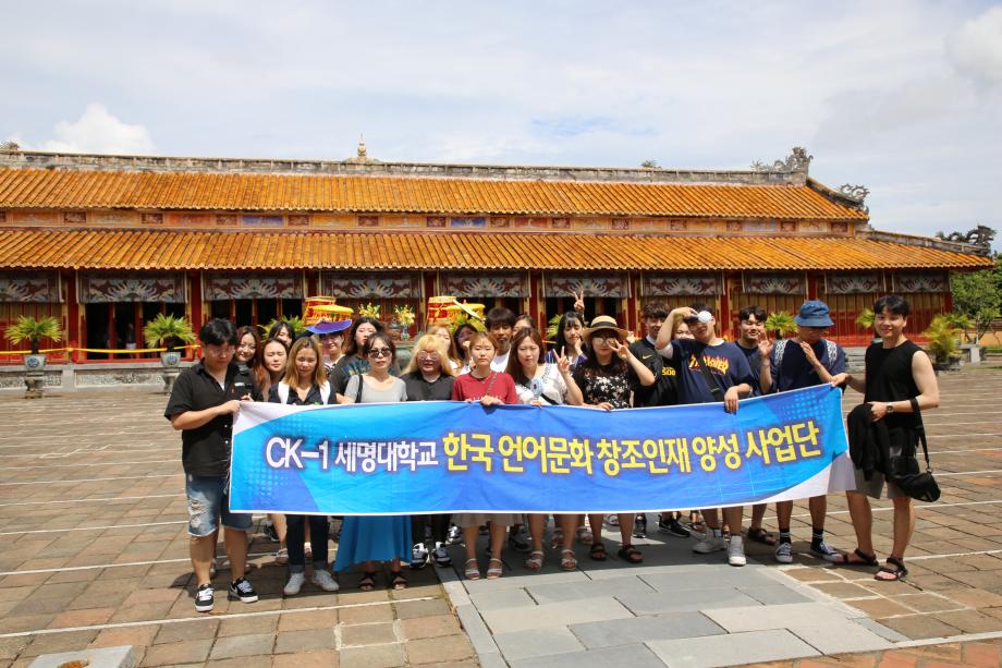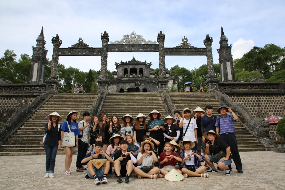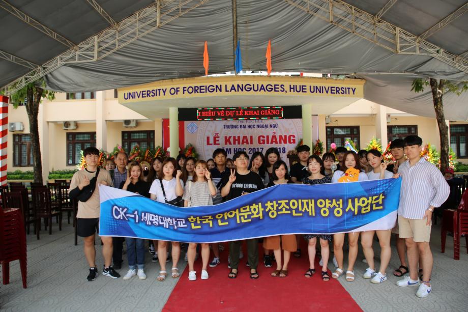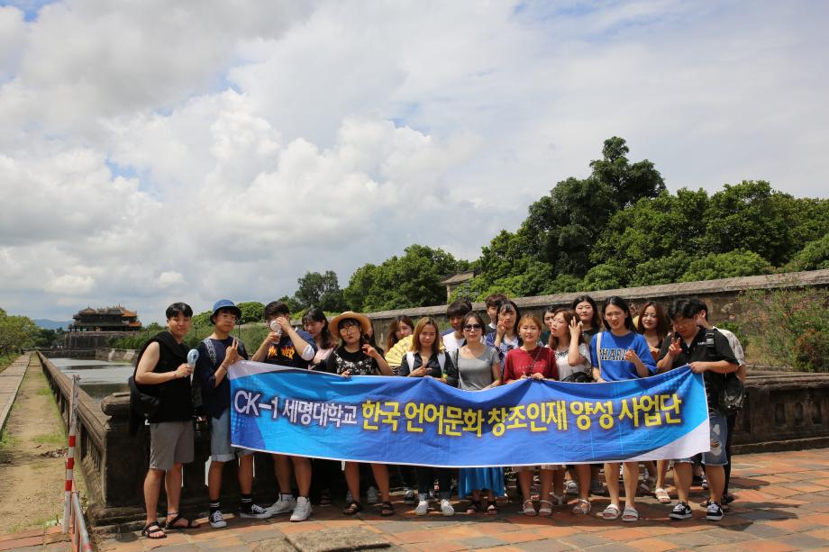 지난 2017년 09월 CK-1사업의 지원을 통해 미디어문화학부 3,4학년 학생들은 베트남 후에로 해외연수를 다녀왔습니다. 전공교과프로그램 중 하나로 진행된 이번 프로그램은 현지 대학교의 대학생들과 교류할 수 있는 교류 프로그램, 세종학당 수업 참관 프로그램, 지역 문화탐방으로 구성되었습니다.