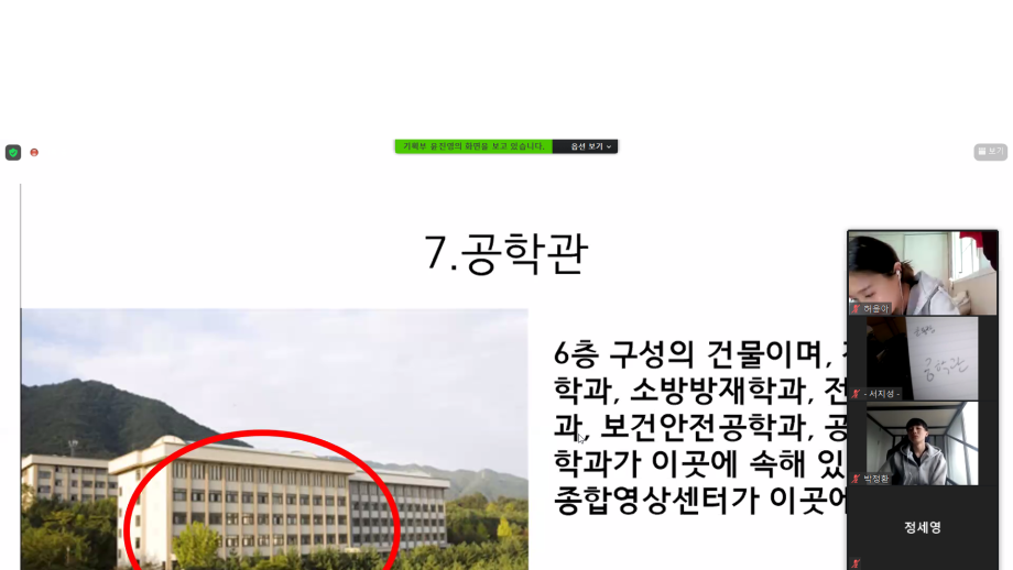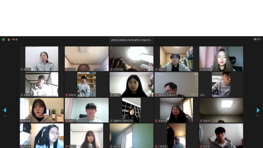 본문 시작 홈으로 커뮤니티 학부소개 전공 소개 학사안내 커뮤니티 홈페이지가이드 사진게시판 공지사항 취업정보 사진게시판 학부자료실 학부 학생회 학부소식 사진게시판 페이스북 트위터 프린트 국제언어문화학부 2021학년도 꿈설계학기 국제언어문화학부 5237 2021-03-08 2021년 2월24일 오전10:00~오후16:00 까지 진행하였습니다.꿈설계 학기를 통해 신입생들에게 학교 건물 위치와 소개된 건물에서는 어떤 어떤 일을 하는지 알려주어 학교에와서 생활을 할때 보다 편리하게 이용을 할수 있도록 알려주었습니다.또한 게임을 통하여 신입생들이 학교에 흥미를 느낄 수 있는 시간이었습니다. 목록 이전국제언어문화학부 어학특기자 면접 다음 2021학년도 국제언어문화학부 신입생환영회 담당부서 : 국제언어문화학부 담당자 : - 연락처 : 043-649-1761 최종수정일 : 2024-10-26 만족도조사 만족도 조사 이 페이지에서 제공하는 정보에 대하여 만족하시나요? 매우만족 만족 보통 불만족 매우불만족