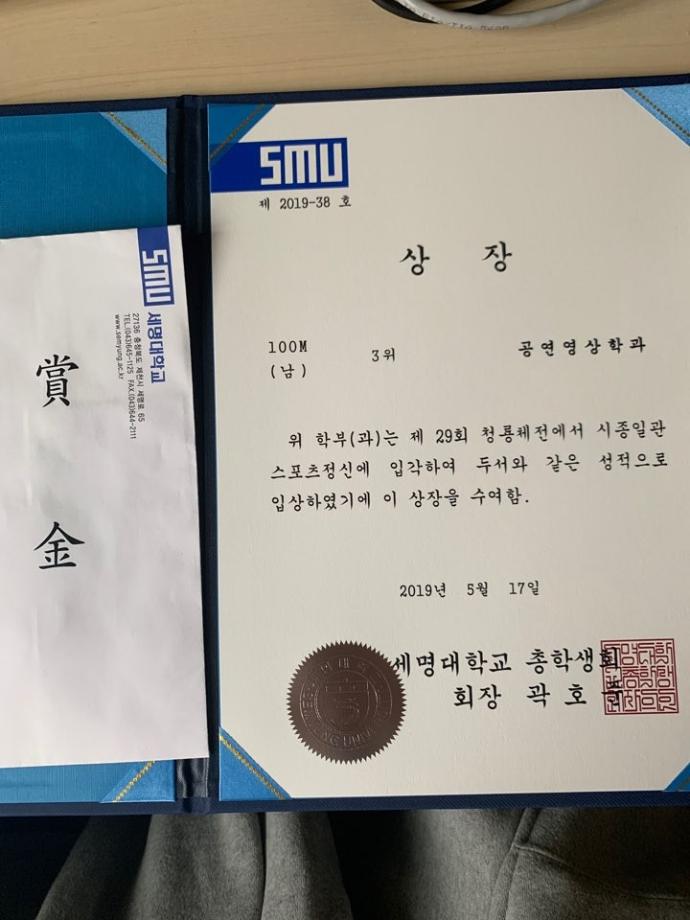19학번 김진영학생이 남자 100M달리기에서 3위를,