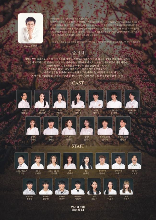 본문 시작 홈으로 커뮤니티 학과소개 교수소개 학과과정 커뮤니티 작품DB 서울대학로 민송아트홀 홈페이지가이드 사진자료실 학과공지 전공자료실 사진자료실 사진자료실 페이스북 트위터 프린트 [공연영상학과] 제 12회 졸업작품 "연기가 눈에 들어갈 때" 공연영상학과 5781 2019-09-23 배우 : 이해창, 최승례, 서진희, 이도경, 이연우, 유종범, 황비홍, 이해빈, 이세준, 박현주, 김지수, 김석현, 정성운 지도교수 : 이정하, 최용진 학생연출 : 김영락 조연출 : 김태양, 안혜연, 정다연 기획 : 이해빈 홍보 : 윤재령 무대디자인 : 장하다 조명디자인 : 박순기 음향디자인 : 김성주 영상디자인 : 이동현 조명O.P : 서보영 음향O.P : 정다연 의상 : 송화진 소품 : 이효리 분장 : 편민지 목록 이전[공연영상학과] 연극놀이지도사 2급 자격증 전원취득 다음 [공연영상학과] 하계프로젝트 " 한여름밤의 꿈 " 담당부서 : 공연영상학과 담당자 : - 연락처 : 043-649-1429 최종수정일 : 2024-10-26 만족도조사 만족도 조사 이 페이지에서 제공하는 정보에 대하여 만족하시나요? 매우만족 만족 보통 불만족 매우불만족