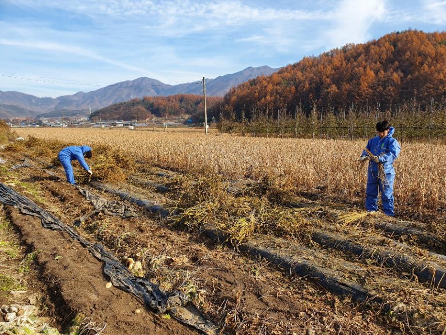 약초캐기, 배추나르기, 과수원 정리 등 다양한 농촌활동을 하면서