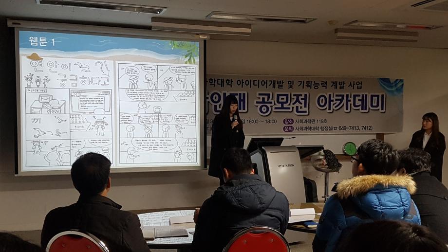 사회과학대학에서 운영하는 공모전 아카데미의 마지막 과정인 프레젠테이션 경진대회가 진행되었다.