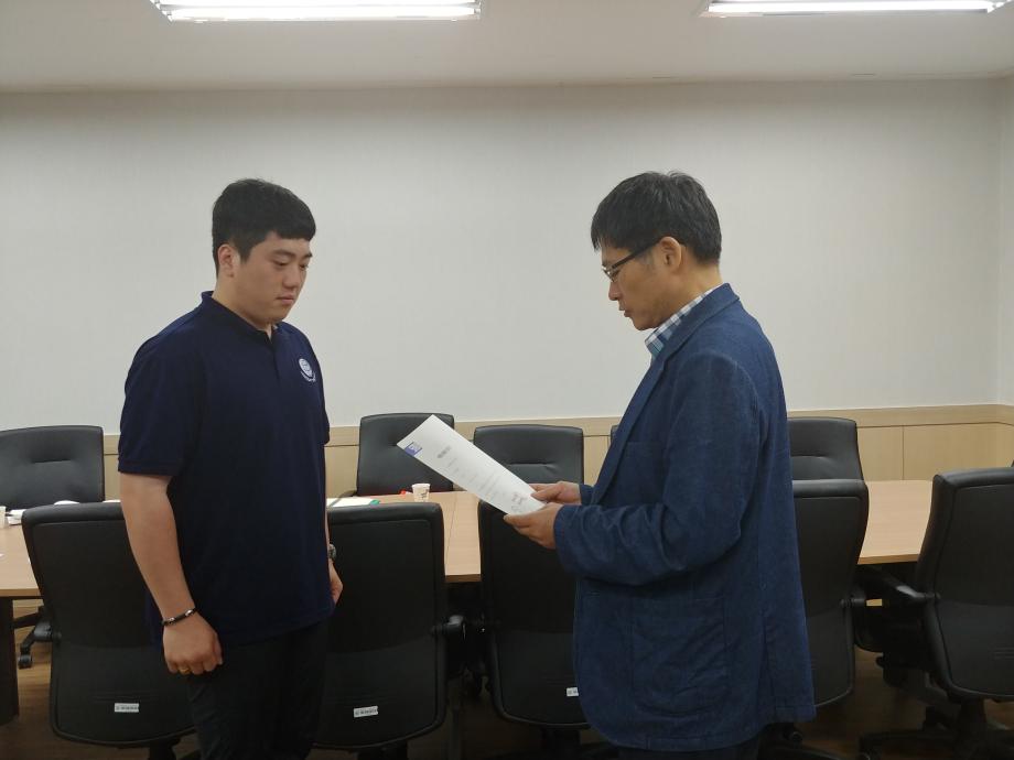 본문 시작 홈으로 커뮤니티 대학소개 학과소개 입학안내 커뮤니티 홈페이지가이드 포토갤러리 대학소식 자료실 포토갤러리 포토갤러리 페이스북 트위터 프린트 2018학년도 사회과학대학 학생모니터링단 임명장 수여 사회과학대학 6322 2018-05-16 2018학년도 사회과학대학 학생모니터링단 임명장 수여 2018학년도 사회과학대학 학생모니터링단 임명장 수여식이 있었습니다. 학생모니터링단은 사회과학대학 학생들의 불편한 시설, 학사제도 등을 조사하여 개선안을 제안하는 활동을 합니다. 학생모니터링단에 선발 된 학생들을 축하하며 활발한 활동을 기대하겠습니다. <선발학생> -글로벌경영학부 박상건 -경찰공공행정학부 이재서 -광고홍보학과 신주아 목록 이전제2회 사회과학대학 토론대회 설명회 다음 제2회 사회과학대학 토론대회 현장스케치.1 담당부서 : 사회과학대학 담당자 : - 연락처 : 043-649-7412 최종수정일 : 2024-10-26 만족도조사 만족도 조사 이 페이지에서 제공하는 정보에 대하여 만족하시나요? 매우만족 만족 보통 불만족 매우불만족
