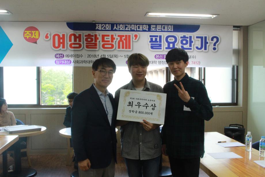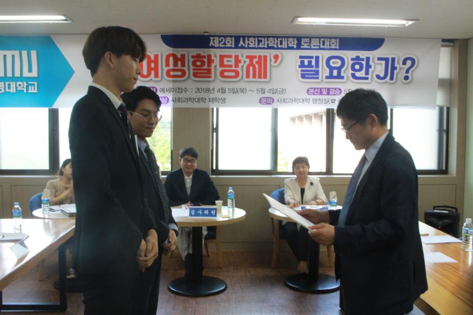 본문 시작 홈으로 커뮤니티 대학소개 학과소개 입학안내 커뮤니티 홈페이지가이드 포토갤러리 대학소식 자료실 포토갤러리 포토갤러리 페이스북 트위터 프린트 제2회 사회과학대학 토론대회 시상식 사회과학대학 6090 2018-05-30 열띤 토론 끝에 호텔관광경영학과의 ‘최종병기’ 팀이 최우수상을 수상했습니다. 최우수상 수상팀에게 직접 상장 수여를 하시기 위해 대회장을 찾아주신 이용걸 총장님께 감사드립니다. 이것으로 제2회 사회과학대학 토론대회가 성황리에 마쳤습니다. 대회 지원을 위해 도와주신 교직원 여러분과 토론대회에 참여해주신 많은 학생들께 진심으로 감사드립니다. 목록 이전제2회 사회과학대학 토론대회 현장스케치2 다음 2018학년도 사회과학대학 취업특화프로그램 설명회 담당부서 : 사회과학대학 담당자 : - 연락처 : 043-649-7412 최종수정일 : 2024-10-26 만족도조사 만족도 조사 이 페이지에서 제공하는 정보에 대하여 만족하시나요? 매우만족 만족 보통 불만족 매우불만족