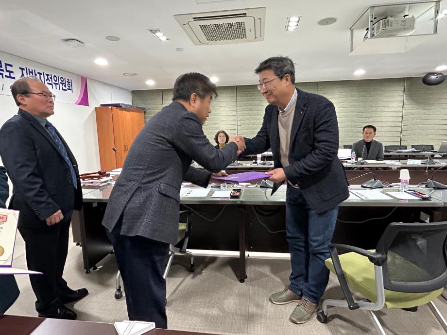 본문 시작 홈으로 학과 소식 학과소개 취업 및 진로 언론 및 보도 학과 소식 대학원 홈페이지가이드 행사사진게시판 행사사진게시판 공지사항 일반자료실 강의자료실 부동산학보 동아리 행사사진게시판 페이스북 트위터 프린트 충청북도 지방지적위원회 권기욱교수님 참여 도시경제부동산학과 3824 2023-12-28 ■ 행사 충청북도 지방지적위원회 개최 ■ 일시 2023.12.27.(수) 10:30 ■ 참여 부동산지적학과 권기욱 교수님 2023년 12월 27일 충북도청에서 지방지적위원으로 부동산지적학과 권기욱 교수님께서 참석하셨습니다. 회의에서는 단양군 영춘면 유암리 618-1번지 일원에 '지적측량부심사 청구건에 대한 사전 안전검토'를 안건으로 심의하였습니다. 작성자 : 부동산지적학과 조교 목록 이전제천제일고등학교 찾아가는 인문학 특강 - 권기욱교수님 다음 법이론실무연구 -(전세보증금 피해구조 검토와 개선방안)부동산지적학과 조재진강사 최우수논문상 취득 담당부서 : 부동산지적학과 담당자 : - 연락처 : 043-649-1784 최종수정일 : 2024-10-26 만족도조사 만족도 조사 이 페이지에서 제공하는 정보에 대하여 만족하시나요? 매우만족 만족 보통 불만족 매우불만족