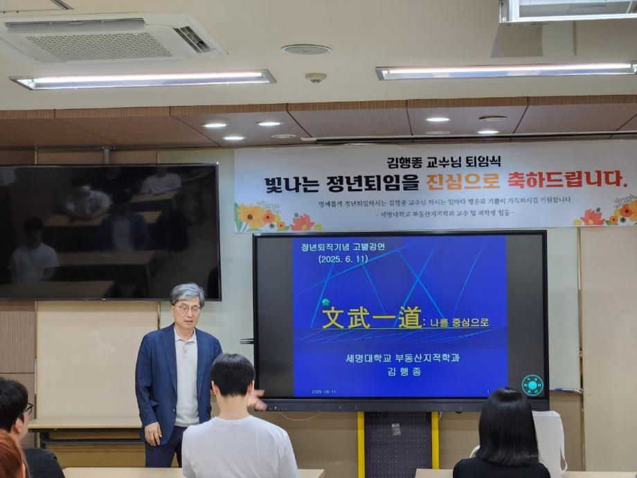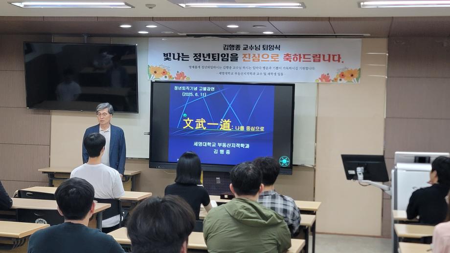 부동산지적학과에서는 2025년 6월 12일, 김행종 교수님의 정년퇴임 기념 마지막 강의 및 퇴임식을 진행하였습니다.