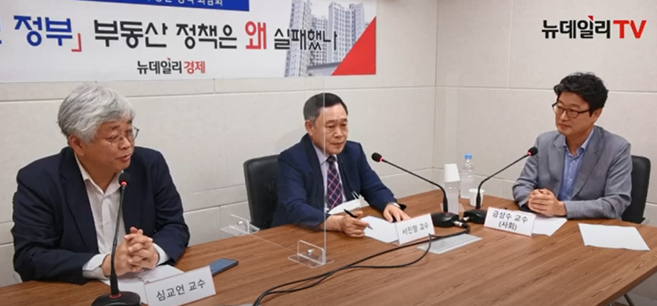 세명대학교 부동산학과 금상수 교수가 뉴데일리경제 주최 ‘문재인정부 부동산정책 왜 실패했나’ 좌담회의 진행을 담당했습니다. 좌담회에는 경인여자대학교 서진형교수, 건국대학교부동산학과 심교언교수가 자리했고, 심교언 교수는 잘못된 진단으로 비롯한 잘못된 부동산정책이 부동산 폭등에 원인으로 요약했습니다.. 서진형 교수는 공급의 부족, 유동성의 원인, 저금정책, 산업경제의 수익률을 담보할 수 없는 상황이 시장의 자금이 부동산시장으로 흘러들어가 폭등의 원인으로 꼽았습니다.