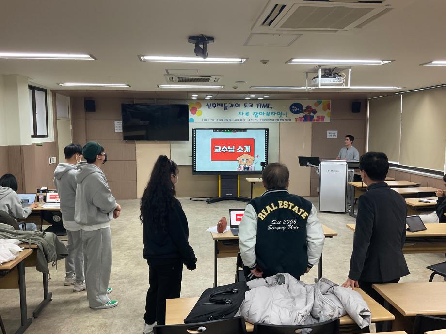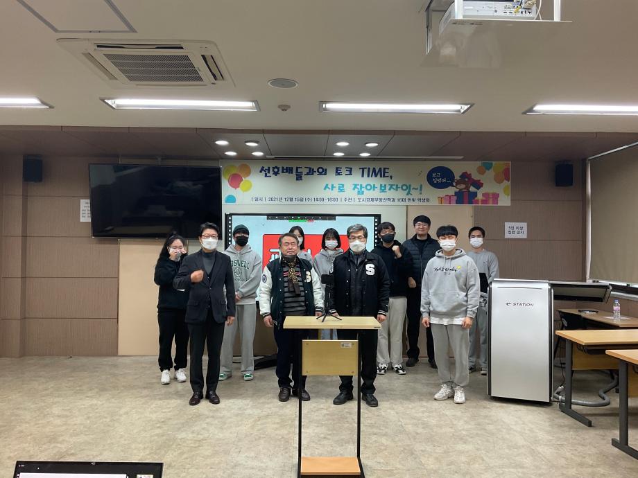 제 16대 한빛 학생회 첫 공식적 행사를 진행을 했습니다. 코로나 여파로 인한 제대로된 학교 생활을 못한 1학년, 2학년을 대상으로 후배와 선배간의 관계를 한층 더 높일 수 있는 자리를 마련해봤습니다. 또한 이번년도 자격증 취득한 학생들의 시험 후기 및 자격증을 공부하는 방법을 알려주는 자리도 있었습니다. 이런 자리로 인해 도시경제 부동산 학과의 분위기와 과 관련의 자격증 및 공부하는 방법을 후배들에게 잘 전달되는 자리가 되었습니다. 당일 행사는 비대면으로 진행하여 코로나 확산으로 대학생활의 어려움이 있었으나 학생들의 적극적인 참여가 있어서 행사 진행에 있어서 한층 더 수월함에 있었습니다.