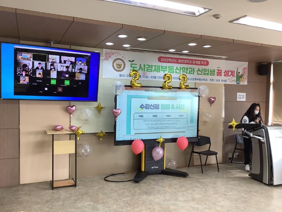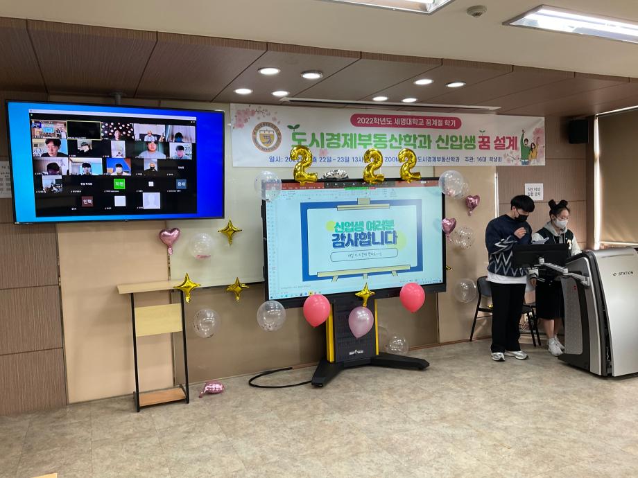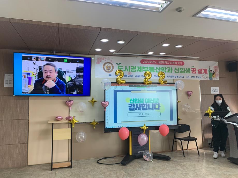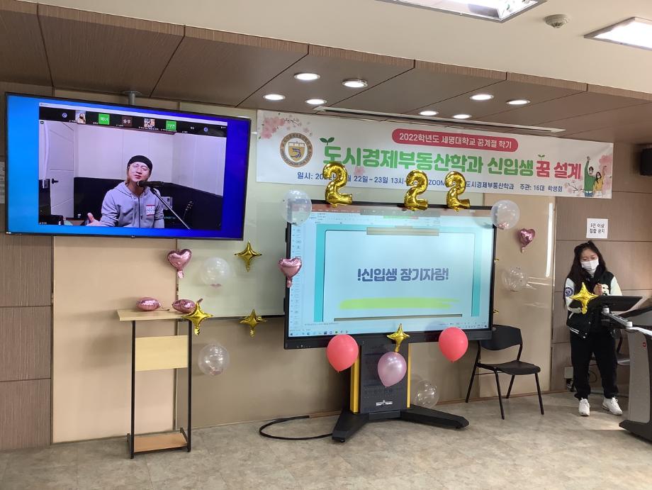 지난 2월22일 도시경제부동산학과 신입생들을 대상으로 꿈 설계학기 프로그램을 진행했습니다. 실시간 ZOOM으로 비대면 행사를 진행했지만 신입생들은 모두 참여해주었습니다. 학생들은 자기소개와 함께 장기자랑으로 자신을 뽐내며 22학번의 저력을 보여주었습니다. ^^