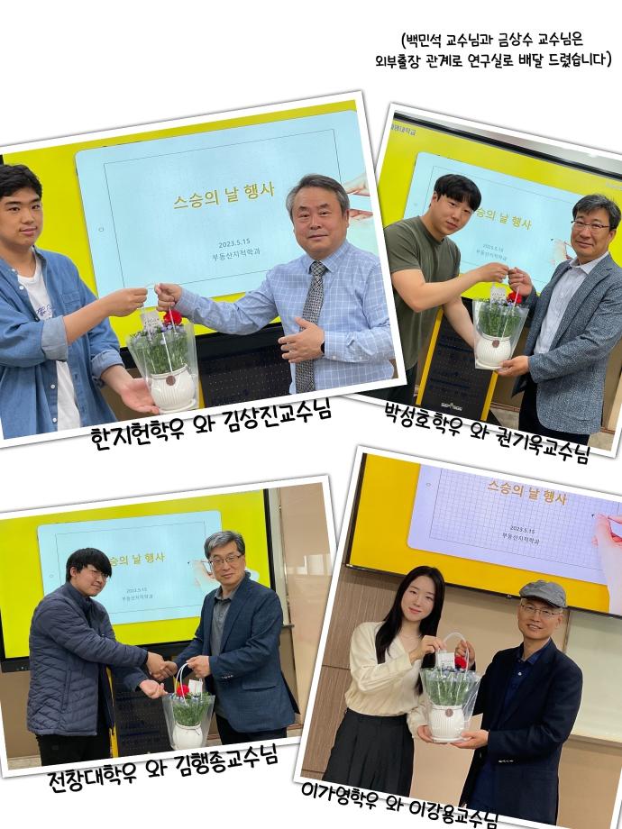 본문 시작 홈으로 학과 소식 학과소개 취업 및 진로 언론 및 보도 학과 소식 대학원 홈페이지가이드 행사사진게시판 행사사진게시판 공지사항 일반자료실 강의자료실 부동산학보 동아리 행사사진게시판 페이스북 트위터 프린트 2023학년도 스승의 날 행사 도시경제부동산학과 3919 2023-05-15 ■ 행사 2023학년도 스승의 날 ■ 일시 2023.05.15 10:30 ■ 참여 김상진교수님, 김행종교수님, 권기욱교수님, 이강용교수님, 도시경제부동산학과 재학생 5월 15일 스승의날을 맞아 재학생 및 학생회임원진이 감사한 마음을 담은 선물을 전달하였습니다. 항상 학생들을 우선적으로 생각해주시고 움직여주시는 교수님들이 있어 행복하고 감사합니다! 작성자 : 도시경제부동산학과 조교 목록 이전2023학년도 도시경제부동산학과 봉사활동 다음 2023학년도 성년의날 행사 담당부서 : 부동산지적학과 담당자 : - 연락처 : 043-649-1784 최종수정일 : 2024-10-26 만족도조사 만족도 조사 이 페이지에서 제공하는 정보에 대하여 만족하시나요? 매우만족 만족 보통 불만족 매우불만족