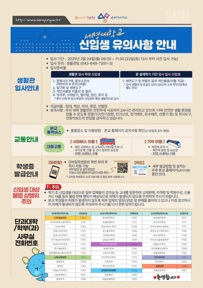 입시생을 위한 링크서비스 입학안내 수시모집 정시모집 편입학 Q&A 학과안내 성적자동산출 입시자료신청 대학소개 장학제도 >학생생활관(기숙사) >찾아오시는길 캠퍼스투어 >국제교류 >학군단(ROTC) >통학버스 입시생 레이어 닫기