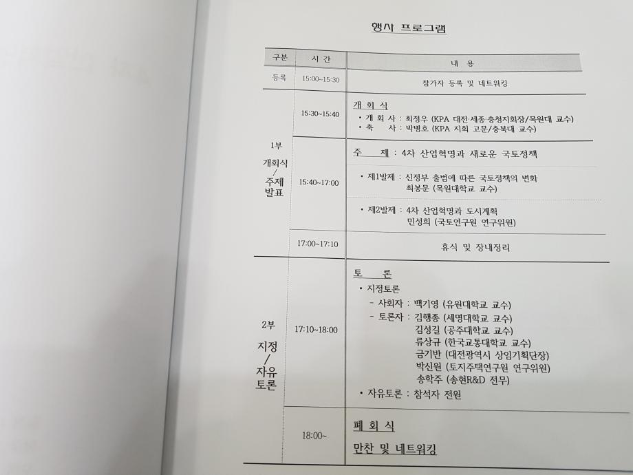 본문 시작 홈으로 학과 소식 학과소개 취업 및 진로 언론 및 보도 학과 소식 대학원 홈페이지가이드 행사사진게시판 행사사진게시판 공지사항 일반자료실 강의자료실 부동산학보 동아리 행사사진게시판 페이스북 트위터 프린트 대한국토도시계획학회 대전.세종.충청지회 2017 춘계학술발표대회 참가 전체관리자 17433 2017-06-19 대한국토도시계획학회 대전.세종.충청지회 2017 춘계학술발표대회 참가 일시: 2017.6.16(금) 15:00-18:00 장소: 한국교통대학교 본관 2층 세미나실 주최: 대한국토도시계획학회 대전.세종.충청지회 주요내용: 4차 산업혁명과 도시계획관련 2주제발표 참가자: 세명대학교 김행종 교수님 지명토론자 참가 목록 다음 축!!! 김행종 교수님 저서 토지 및 지적재조사법론 발간 이전2017년 전반기 한국부동산학회 전국부동산학술대회 참가 담당부서 : 부동산지적학과 담당자 : - 연락처 : 043-649-1784 최종수정일 : 2024-10-26 만족도조사 만족도 조사 이 페이지에서 제공하는 정보에 대하여 만족하시나요? 매우만족 만족 보통 불만족 매우불만족