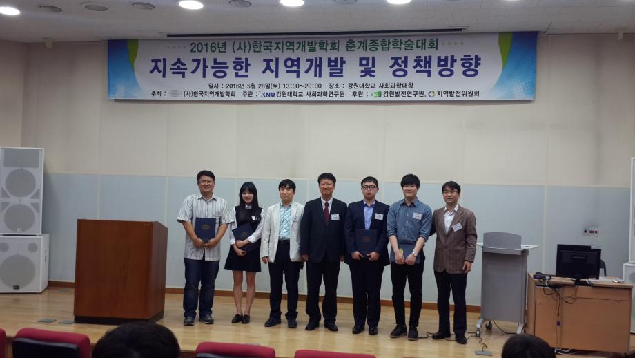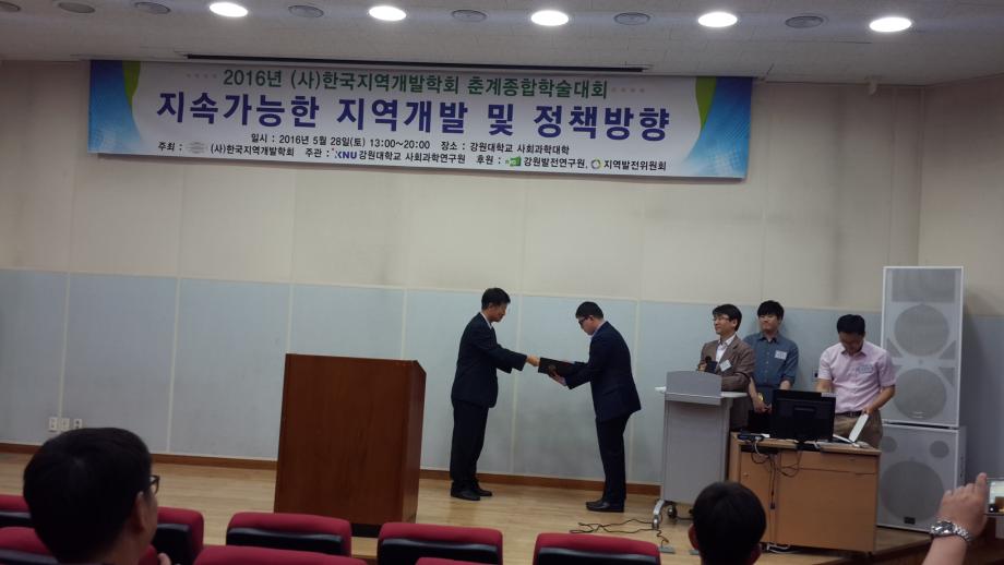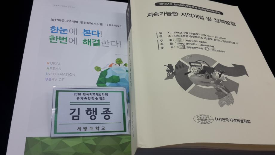 본문 시작 홈으로 학과 소식 학과소개 취업 및 진로 언론 및 보도 학과 소식 대학원 홈페이지가이드 행사사진게시판 행사사진게시판 공지사항 일반자료실 강의자료실 부동산학보 동아리 행사사진게시판 페이스북 트위터 프린트 2016년도 한국지역개발학회 춘계종합학술대회 참가 전체관리자 9430 2016-05-30 2016년도 한국지역개발학회 춘계종합학술대회 참가 일시: 2016.5.28(토) 13:00-20:00 장소: 강원대학교 춘천캠퍼스 주최: 한국지역개발학회 주관: 강원대학교 사회과학연구원 주요내용: 기조발표 (육동한 강원발전연구원장), 기획세션 4편, 전문가세션 8편, 대학원세션 25 등 38편 주제발표 참가자: 세명대학교 김행종 교수님 토지/주택/부동산세션 좌장 참가 목록 다음 2016년 1학기부동산학과 초청강사 특강 이전2016 부동산학과 농촌봉사활동 담당부서 : 부동산지적학과 담당자 : - 연락처 : 043-649-1784 최종수정일 : 2024-10-26 만족도조사 만족도 조사 이 페이지에서 제공하는 정보에 대하여 만족하시나요? 매우만족 만족 보통 불만족 매우불만족