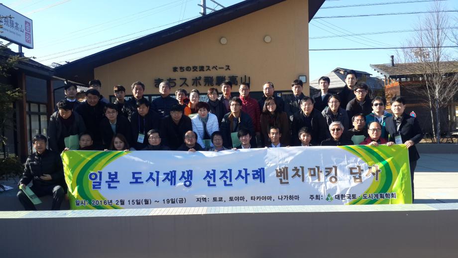본문 시작 홈으로 학과 소식 학과소개 취업 및 진로 언론 및 보도 학과 소식 대학원 홈페이지가이드 행사사진게시판 행사사진게시판 공지사항 일반자료실 강의자료실 부동산학보 동아리 행사사진게시판 페이스북 트위터 프린트 일본 도시재생 선진사례 벤치마킹 프로그램 참가 전체관리자 8724 2016-02-21 일본 도시재생 선진사례 벤치마킹 프로그램 참가 0 일시: 2016년 2월 15일-19일 0 주관: 대한국토.도시계획학회 0 주요방문기관: 국토교통성, 민간도시개발추진구고(MINTO), 토야마 시청, 마찌즈쿠리토야마, 카나자와시민예술촌, 타가야마 시청, 나가하마 마찌즈쿠리 등 0 참가자: 세명대 김행종 교수, 한양대 구자훈 교수, 목원대 최봉문 교수 등 연구원, 시도 도시재생 공무원 등 목록 다음 2016꿈설계학기 1일차(2) 이전2016 부동산학과 학위수여식 담당부서 : 부동산지적학과 담당자 : - 연락처 : 043-649-1784 최종수정일 : 2024-10-26 만족도조사 만족도 조사 이 페이지에서 제공하는 정보에 대하여 만족하시나요? 매우만족 만족 보통 불만족 매우불만족