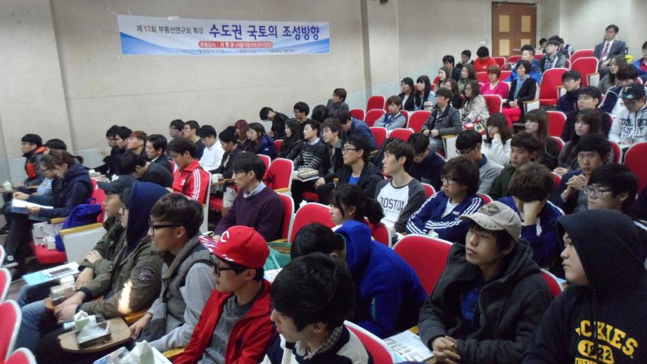 세명대 부동산학과(학과장 권기욱)는 서울지방국토관리청 서명교 청장님을 모시고 “수도권 국토의 조성방향” 주제로 10월 30일(수) 13:30~15:00 공학관 123호에서 제17회 부동산전문가 취업특강을 실시하였다. 이날 서명교 청장님은 서울지방국토관리청에 대한 소개 및 한강 살리기 현황, 서울의 부동산 이슈(주택의 수요와 공급, 거래현황 및 매매가, 3차원 부동산정보 구축 현황) 등에 대한 말씀과 서울시 공직생활 동안 경험담, 부동산현상과 연계한 취업문제, 글로벌 감각을 지닌 취업준비 필요성 등을 강조하였다. 앞으로 부동산학과에서는 부동산전문가 취업특강 및 관련 프로그램을 지속적으로 개최하고 재학생들의 학업능력을 증진시키기 위한 중장기 교육 프로그램을 개발해 나갈 예정이다.