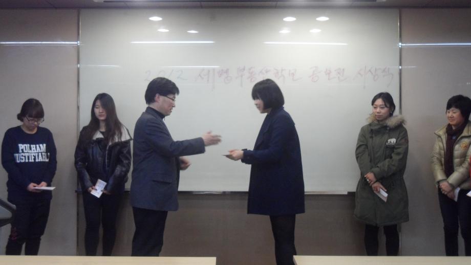 - 최우수상( 도서상품권 5만원 ): 2학년 정세미 ( 소백산 비로봉에 오르다 ), 2학년 남혜경 ( 땅을 밟고 역사를 찾다 )
