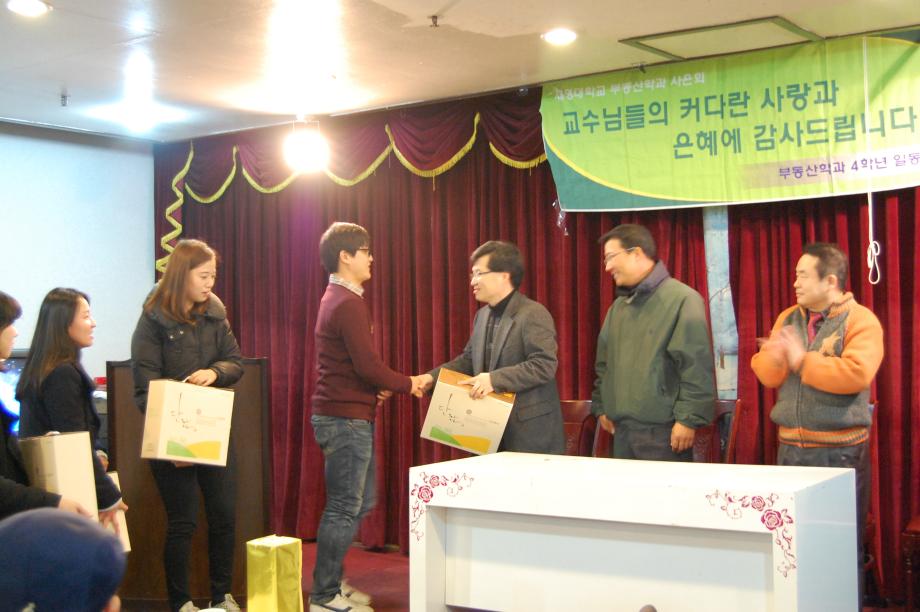 본문 시작 홈으로 학과 소식 학과소개 취업 및 진로 언론 및 보도 학과 소식 대학원 홈페이지가이드 행사사진게시판 행사사진게시판 공지사항 일반자료실 강의자료실 부동산학보 동아리 행사사진게시판 페이스북 트위터 프린트 제4회 부동산학과 사은회 개최 전체관리자 7372 2012-11-13 제4회 부동산학과 사은회 개최 일시: 2012.11. 6(화) 19:00 -21:00 장소: 성현한정식 참석자: 학과교수님, 조교선생님, 학회장, 4학년 재학생 ♥ 교수님의 가르침에 감사드립니다.♥ 목록 다음 제14회 부동산전문가특강 노병한 박사 이전제8회 국제지적심포지움 주제발표 및 총회참석 담당부서 : 부동산지적학과 담당자 : - 연락처 : 043-649-1784 최종수정일 : 2024-10-26 만족도조사 만족도 조사 이 페이지에서 제공하는 정보에 대하여 만족하시나요? 매우만족 만족 보통 불만족 매우불만족
