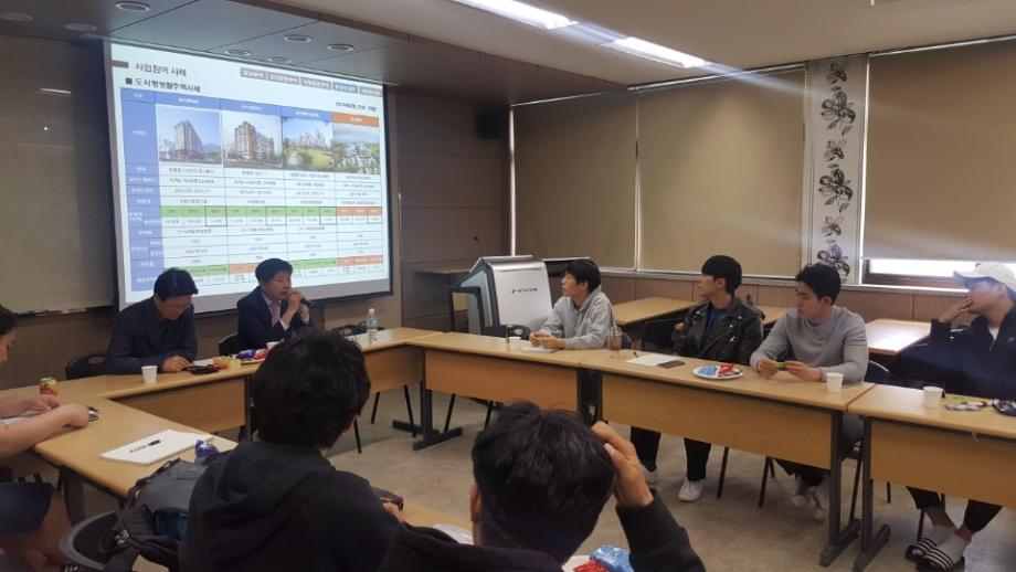 세명대학교 부동산학과는 금상수교수님의 자산관리실무체험 교과목 시간인 05월 11일일 금요일 (주)창성건설 백운걸 전무님을 초청하여 "부동산개발사업 실무사례"의 주제로 특강을 실시하였습니다. 부동산학과를 위해 먼 길을 오셔서 시간내주신 백운걸 전무님께 감사드립니다.