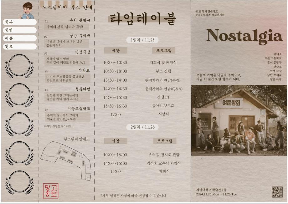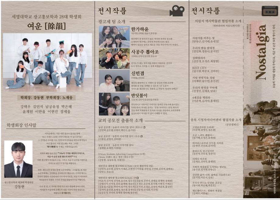 본문 시작 홈으로 특별CC프로그램 매력적인 학과소개 흥미로운 교육과정 특별CC프로그램 We can 취업 따뜻한 커뮤니티 홈페이지가이드 광고전시회 광고전시회 광고영상 제작실습 광고디자인 자격증취득 C&E(도전!경험!) 작품 작품 활동 작품 페이스북 트위터 프린트 [2024년도]제29회 광고전시회 광고홍보학과 3966 2024-12-04 제29회 광고전시회 노스탤지아 목록 이전[2023년도]제28회광고전시회 다음 [2025년도]제30회광고전시회