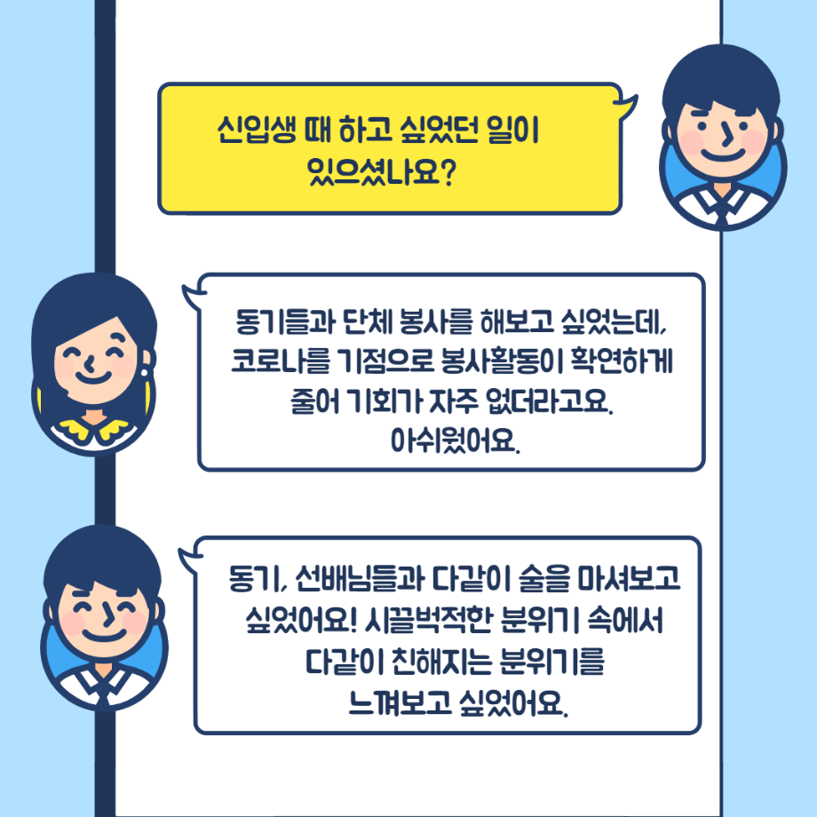 본문 시작 홈으로 커뮤니티 학과소개 교수소개 교육과정 현장실습 및 취업정보 커뮤니티 홈페이지가이드 학생 소통 광장 학과공지 학사일정 학생회 동아리 학생 소통 광장 포토갤러리 전공자료실 서식자료실 학생 소통 광장 페이스북 트위터 프린트 사복과 선배님께 여쭤봐(1학년) 사회복지학과 3181 2022-02-09 사회복지학과에 궁금한 점을 물어보는 사복과 선배님께 여쭤봐 - 1학년편(마지막)입니다! 목록 이전사복과 선배님께 여쭤봐(2,3학년) 다음 사회복지학과라면 필수 동아리.ZIP 담당부서 : 사회복지학과 담당자 : - 연락처 : 043-649-1799 최종수정일 : 2024-10-26 만족도조사 만족도 조사 이 페이지에서 제공하는 정보에 대하여 만족하시나요? 매우만족 만족 보통 불만족 매우불만족